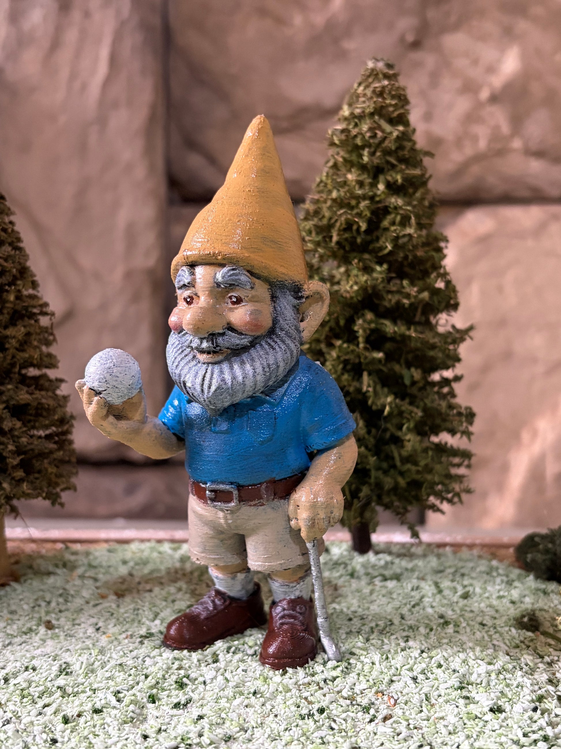 With his trusty club and an eye for perfection, this little gnome swings not for sport, but for destiny. It’s said that Birdie McBeard once drove a ball so far, it landed in the realm of the fair folk — and they still use it as a moonstone! Place him in your garden for good aim, fair weather, and a little luck on every swing.