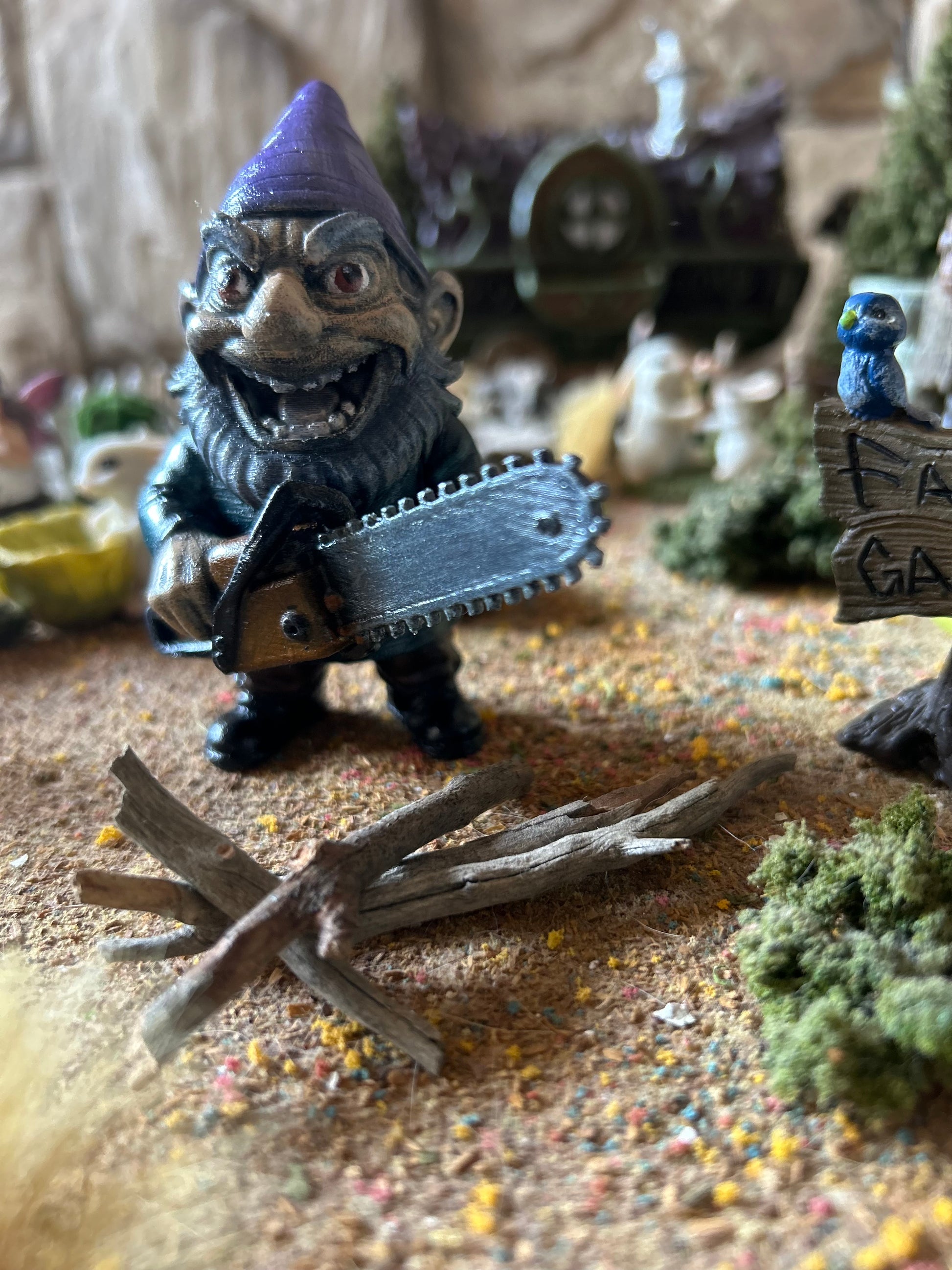 Meet the gnome who takes garden “maintenance” very seriously… and very loudly! Armed with his trusty chainsaw and a mischievous grin, this fearless little forest dweller is ready to tackle overgrown shrubs, rogue weeds, or just make your garden guests do a double take. Hand-painted with intricate detail—from his pointy hat to his tiny work boots—he’s a hilarious, slightly terrifying addition to any garden, porch, or bookshelf.