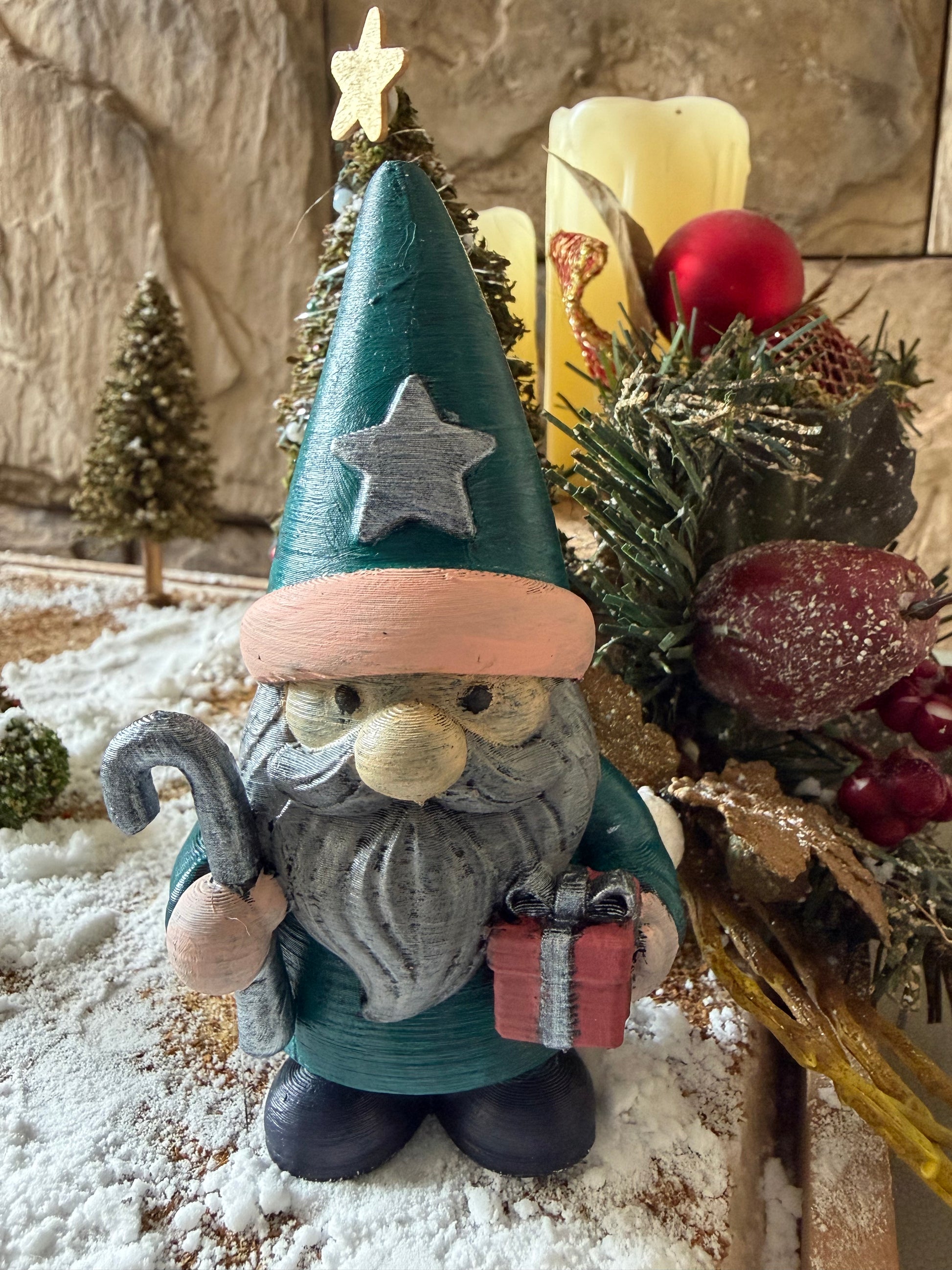Warning: Winter folklore insists that gift-bearing gnomes are keepers of secret blessings. They say the present he carries holds a tiny spark of Christmas luck, granted only to homes that show kindness during the season. But mind his candy cane carefully — legend claims it doubles as a staff of gentle mischief. Should he feel ignored or placed in a gloomy corner, he may tap his cane three times at midnight and shuffle your decorations into “better” positions, all according to gnome tradition. Treat him well, and he’ll guard your home with sweetness and silent cheer.
