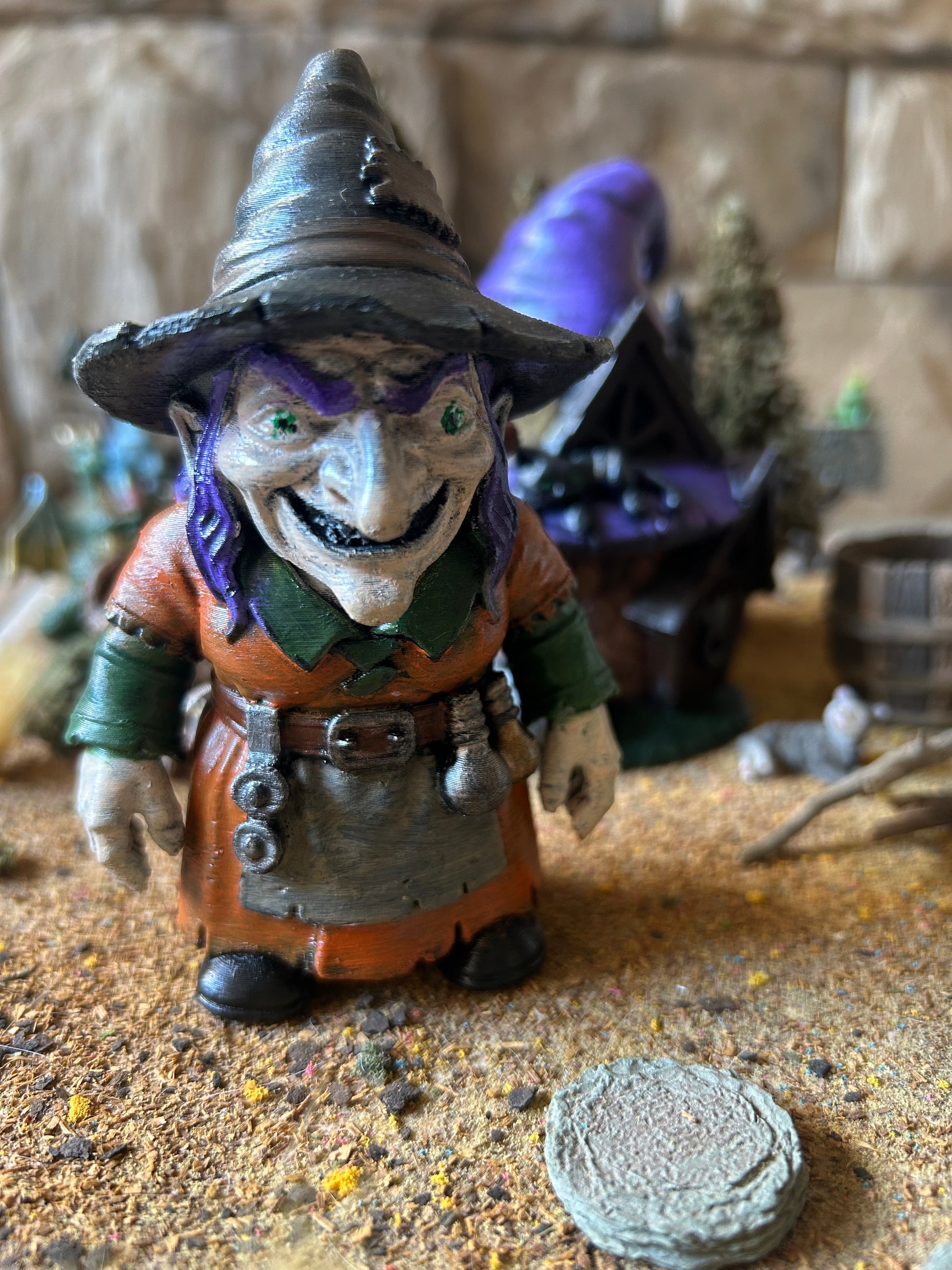 With her crooked hat, twinkling eyes, and a cauldron bubbling with who-knows-what, Hagatha stirs up enchantment wherever she goes. She’s equal parts spooky and charming—perfect for a magical garden touch.