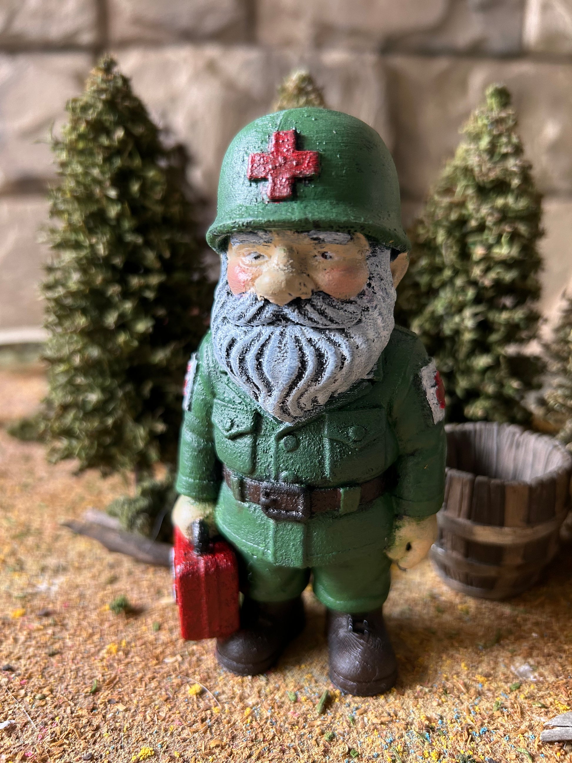Battle-scarred but unbroken, this hardy gnome rushes to the aid of comrades during woodland skirmishes and mischievous fairy pranks alike. His pouch is filled with herbs, poultices, and a dash of bravery, always ready to stitch, soothe, or splint.