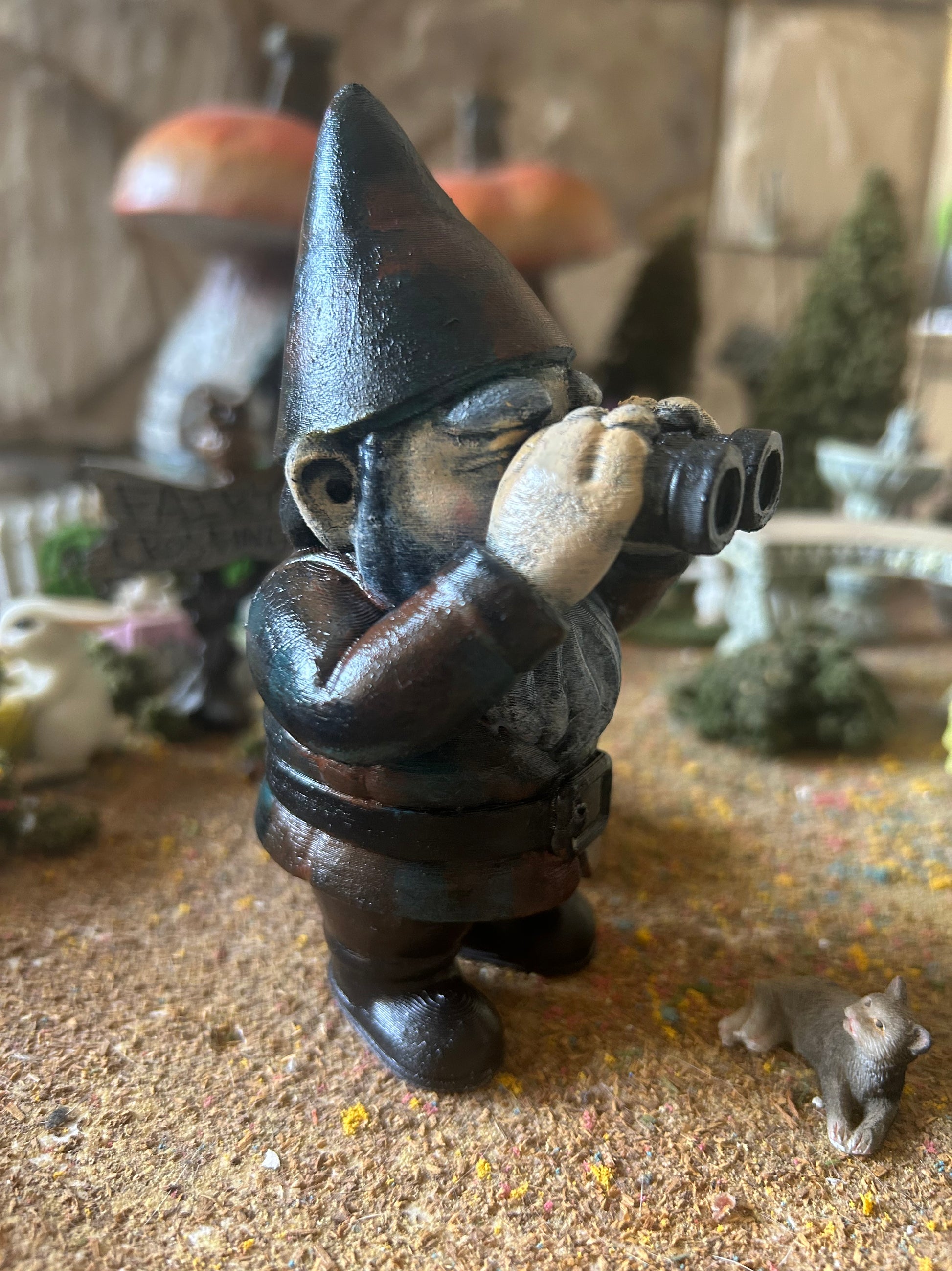 Keep an eye on your garden adventures with this pint-sized sentinel! Standing proudly with his trusty binoculars, this curious gnome is always on the lookout for mischief, butterflies, or the occasional sneaky squirrel. Hand-painted with charming detail, his twinkling eyes and cheeky smile bring whimsy and wonder to any outdoor space. Perfect for garden paths, flower beds, or even as an indoor conversation starter—this gnome proves that big adventures can come in small, bearded packages.