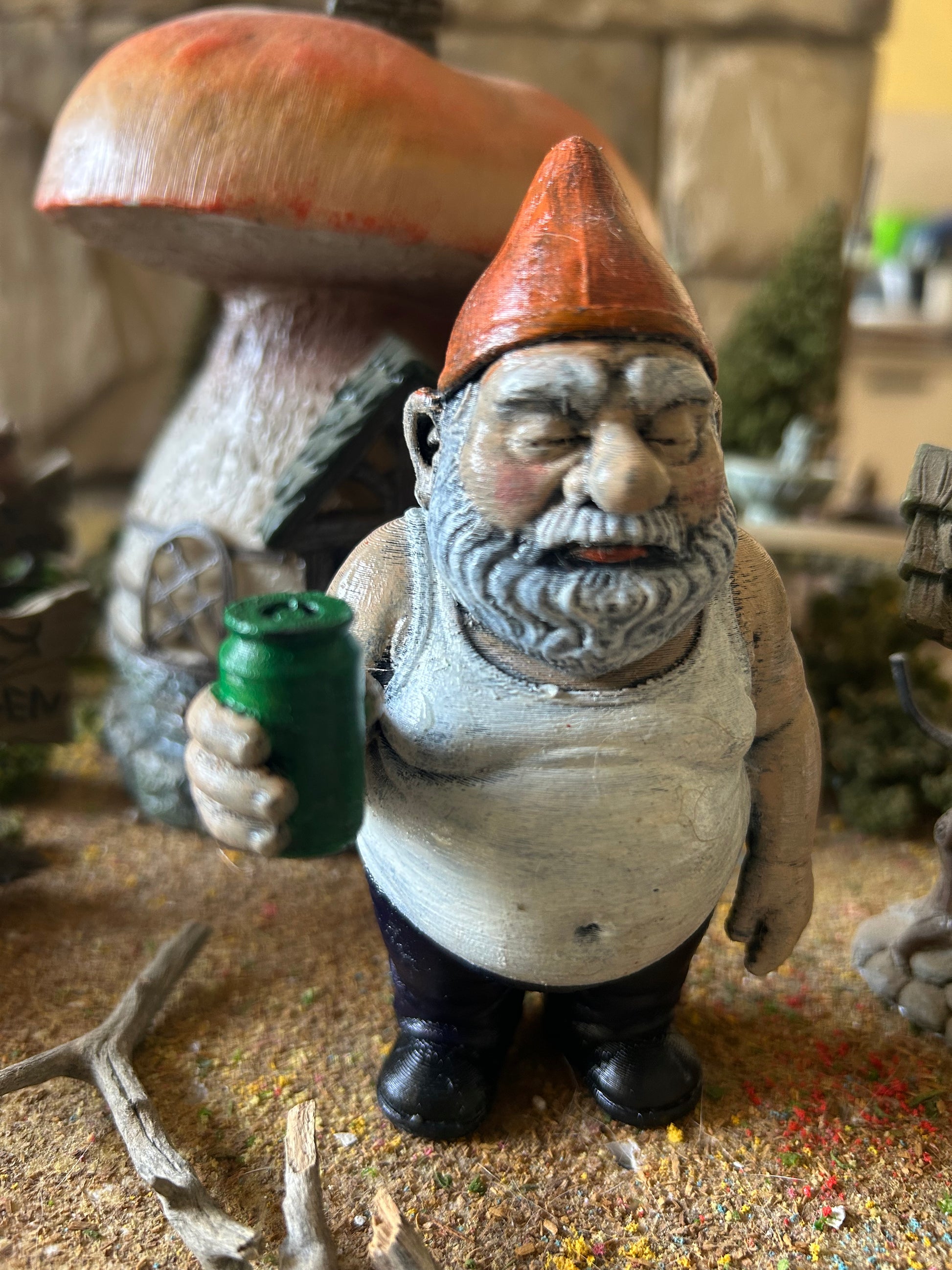 With his ever-present drink in hand and a belly that proudly leads the way, Paul Porkers is the laid-back life of the garden. He prefers shade to shovels and laughter to labor, claiming he’s “supervising” rather than slacking. Whether he’s propped against a mushroom or holding court by the flowerbeds, Paul brings a touch of relaxed charm (and maybe a burp or two) to any corner he calls home.