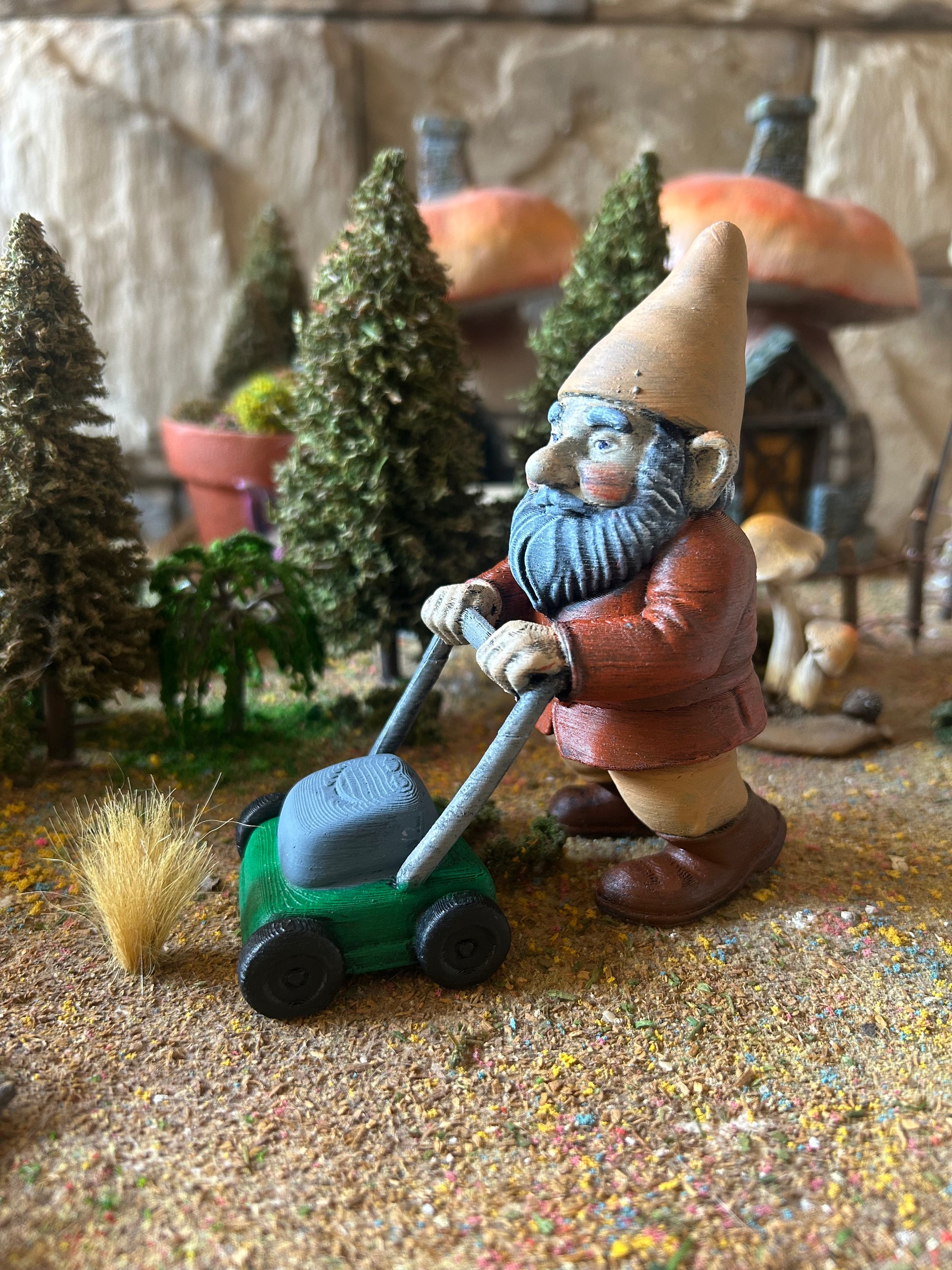 Meet Percival Patchkeeper, the tireless keeper of tidy lawns. With his trusty old-fashioned push mower, he hums a jaunty tune as blades of grass fall in neat rows behind him. Unlike noisy modern contraptions, Percival’s mower runs purely on gnome energy and enchanted gears, ensuring your garden stays as peaceful as it is pristine.