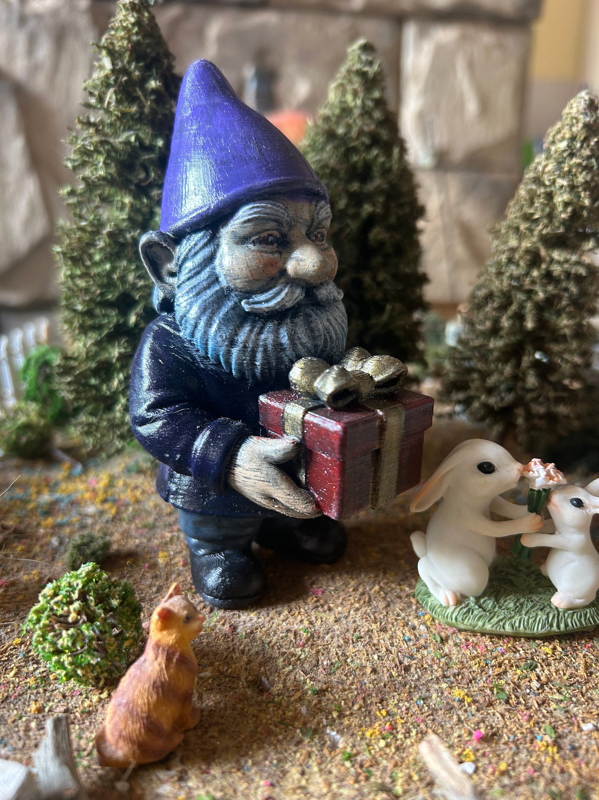 With rosy cheeks, a twinkle in his eye, and a gift clutched tightly in both hands, Pippin Giftwhistle is the very picture of festive cheer. Whether he’s bringing birthday blessings, holiday joy, or just a surprise for no reason at all, Pippin is the kind of gnome who makes every day feel like a celebration. Set him among your flowers, on a patio, or even as a centerpiece, and let him share his endless spirit of giving.