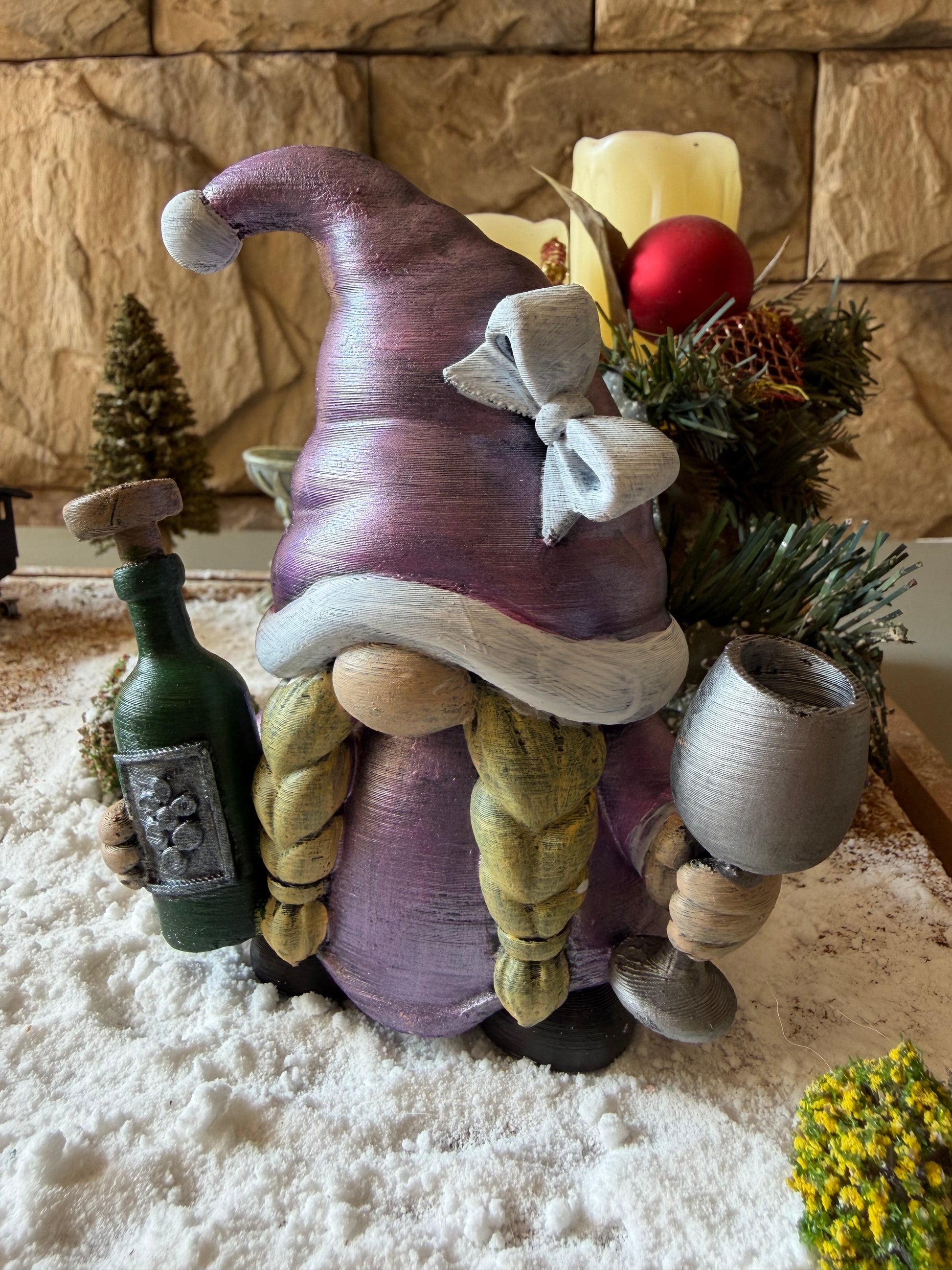 Warning: According to festive folklore, Wine Gnomes are “Cellar Guardians,” known for blessing gatherings with cheer — but also for mysteriously rearranging bottles after midnight. If your corks have shifted, she may have hosted a tiny gnome tasting party. Leave a single grape (real or decorative) to keep her lovingly behaved.