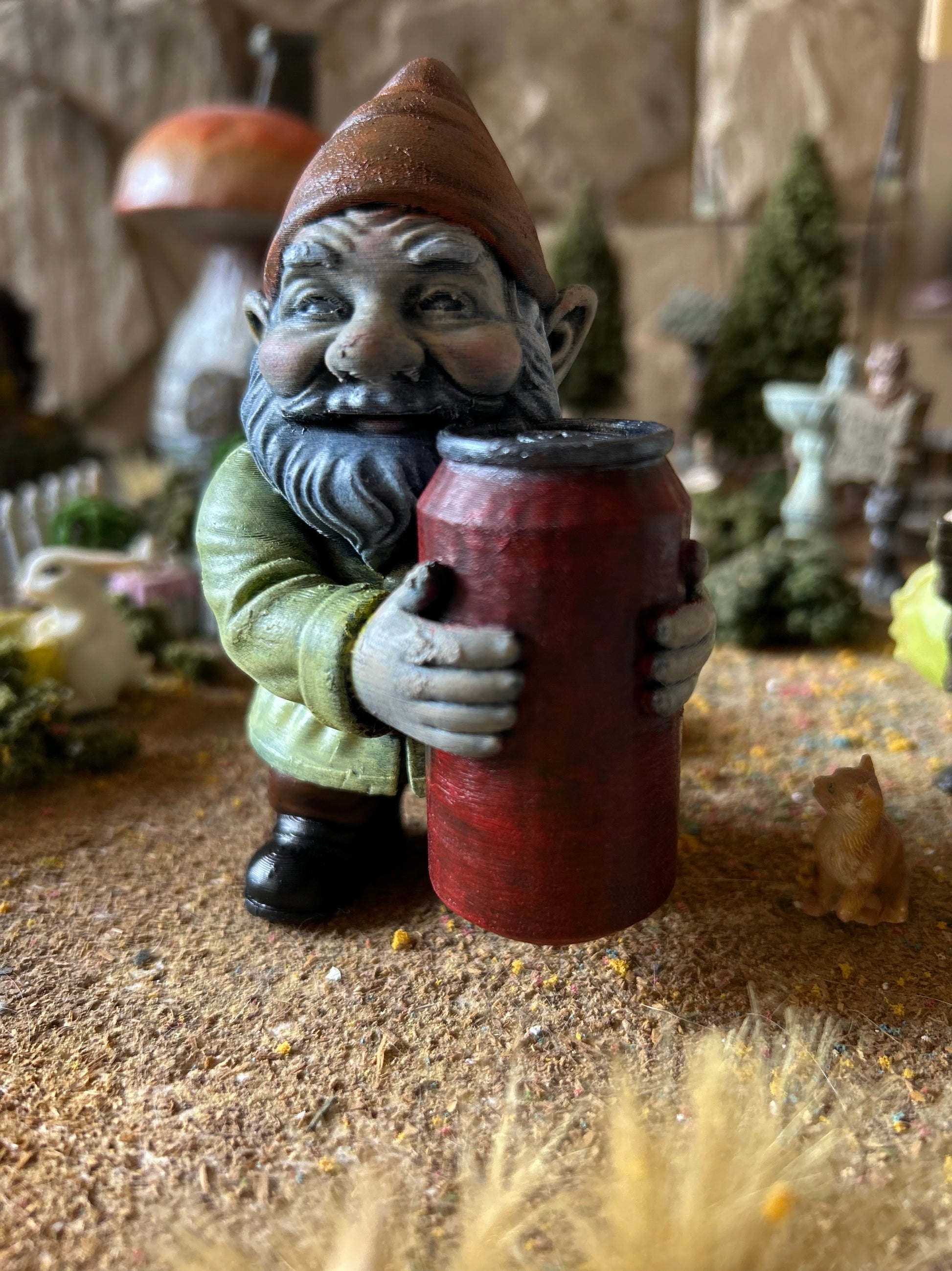 Whether you picture him sipping root beer, cola, or something extra fizzy, this cheerful gnome is guaranteed to bring a smile (and maybe a craving for snacks) to anyone who spots him.