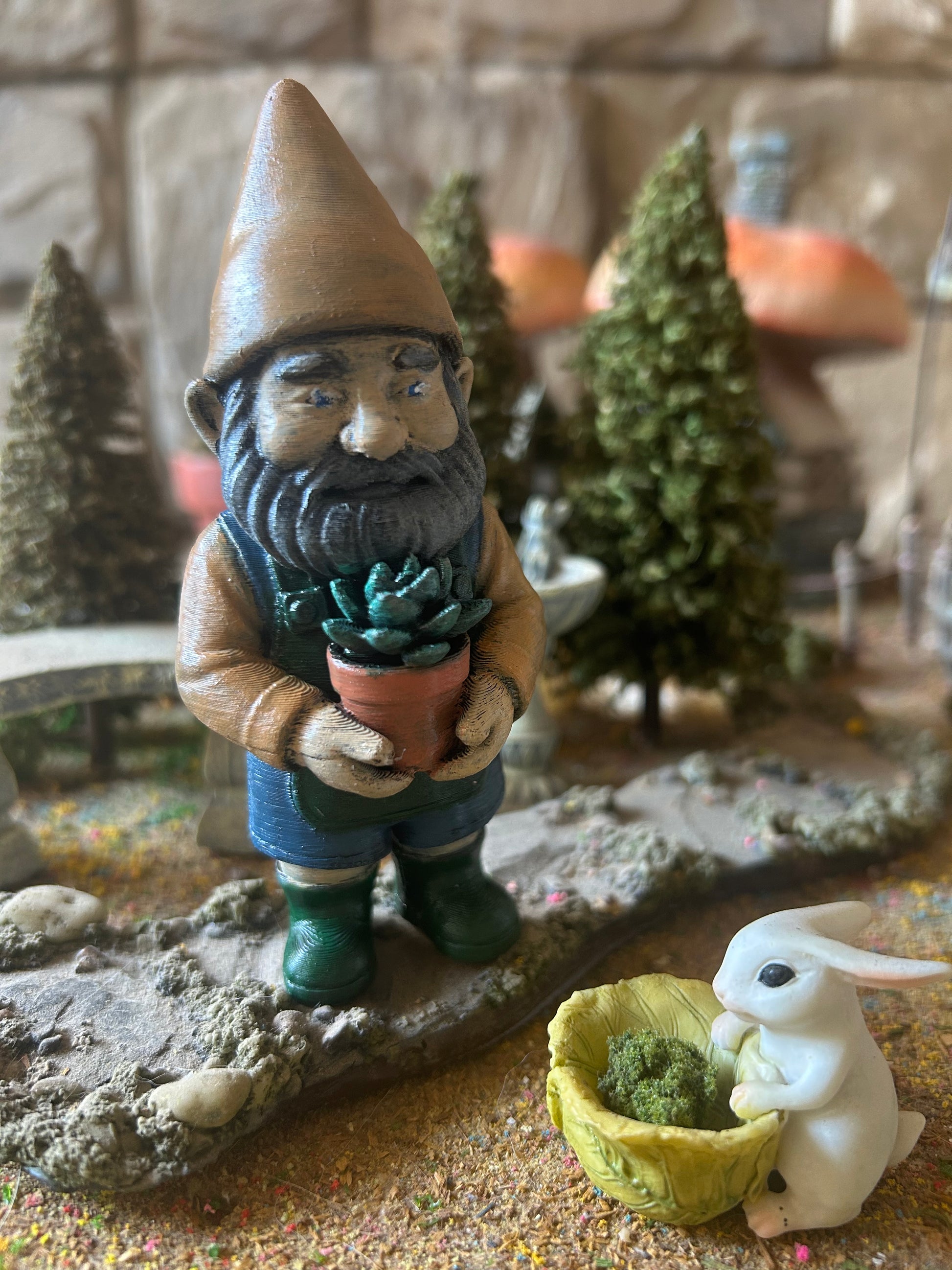 Cradling a tiny succulent with great pride, Theo proves that even the smallest plants carry the biggest magic. Perfect for plant lovers, he’s a symbol of patience, care, and the quiet joy of tending something green. Place him among your pots, and watch your plants feel a little more loved.